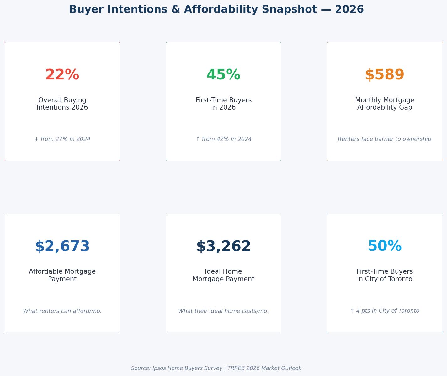 The First-Time Buyer Gap: Despite being the most affordable housing type, Ipsos polling found a persistent gap of approximately $600 between what typical renter households could afford for a monthly mortgage and the actual cost of a condo unit.