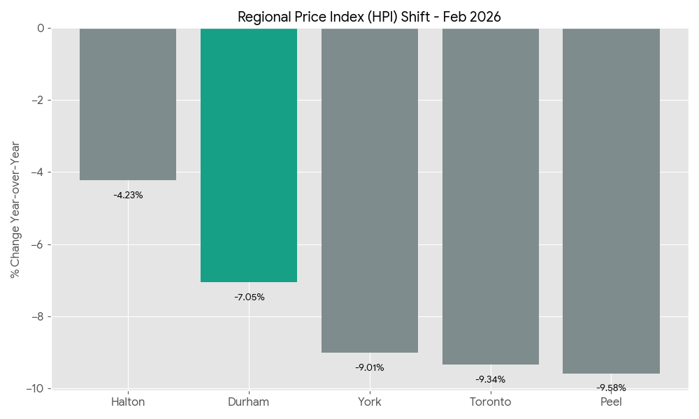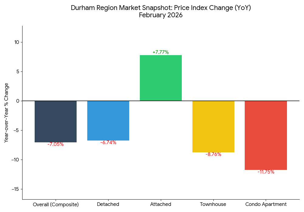 While the overall market is adjusting, Durham Region is showing some fascinating resilience in specific sectors. Here is the year-over-year price index change for February 2026: