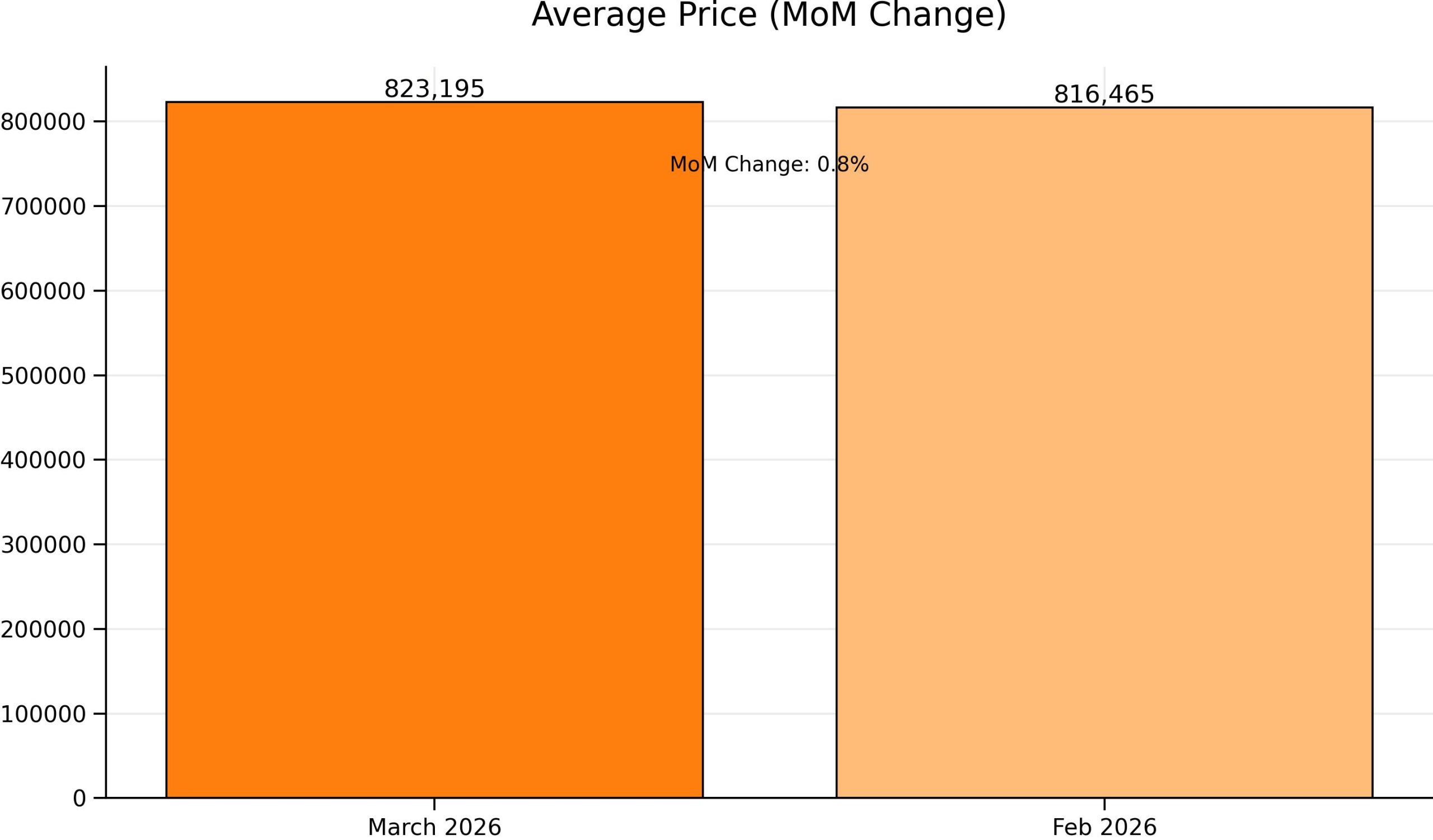 Average Sale Price: At $823,195, we are seeing a steady 0.8% increase over last month. However, we are down 5.2% from the $868,446 average seen in March 2025.